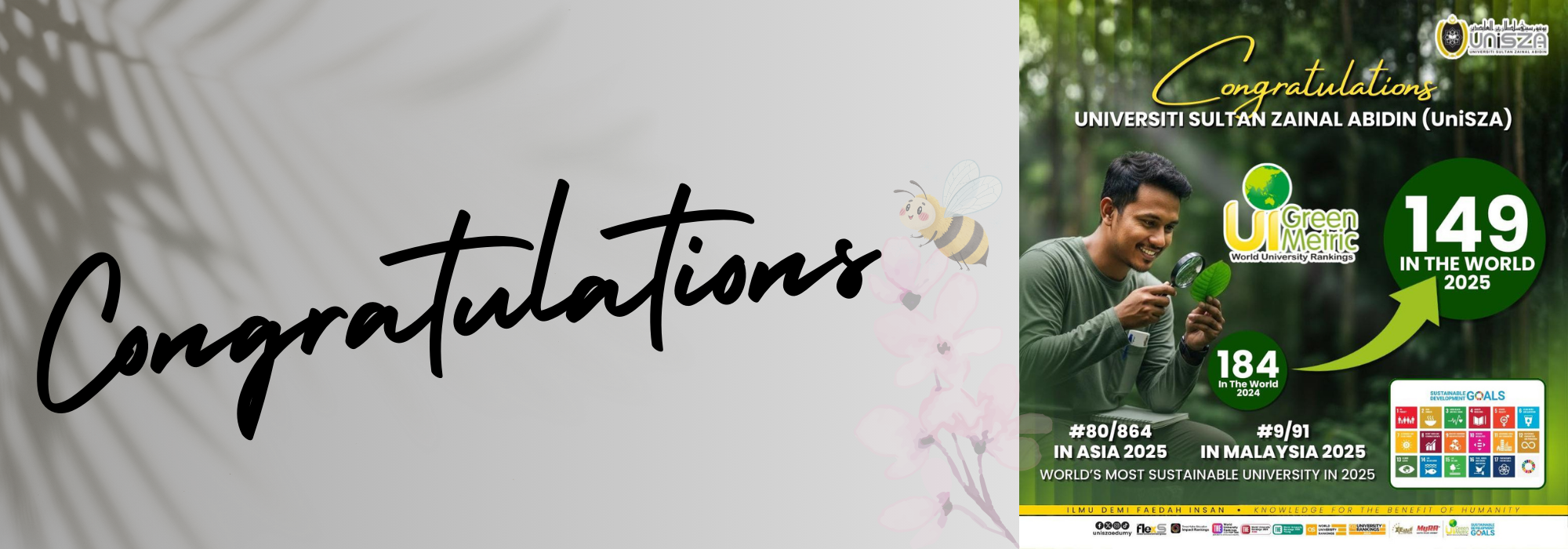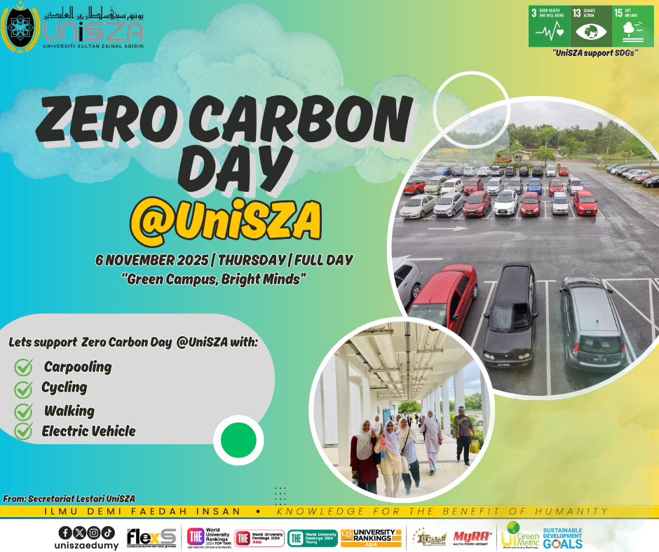 Semoga warga UniSZA terus menyokong pelaksanaan/inisiatif program kelestarian di UniSZA demi memastikan kampus kita terus konsisten dalam menjaga kelestarian alam.